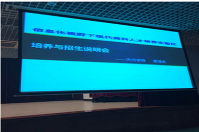 说明会中,肖老师以天河学院信息化历程说明了管理信息化的必然趋势,以刚刚过去的“双十一”网络促销证实了电子商务对企业经营管理的颠覆性改变。在此前提下,建设与招生中的实验班将全面构建最符合社会需求的信息化方向实验班,在现在大三学生中,招收40到50名学生,争取在后续一年半的时间里,深入进行信息化管理、ERP软件、电子商务、自媒体等内容教学与研究;实验班将以阶段性授课为主导,以院内考试与国家职业资格认证结合进行学生成绩评定与考核;学生在实验班中,不仅需要学习相关理论知识,还将通过更深入社会实践或创业完成综合素质的培养与提高;同时,实验班也明确要求学生在经营自有网店同时,应完成规定学习并协助合作方广东民建公司相关网店销售与经营。