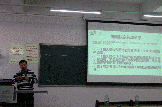 易晓辉先生从事人力资源管理以及劳动法规研究10余年,为近百家知名企业提供劳资关系管理顾问服务,积累了丰富的劳动争议处理和构建低风险的人事管理制度道德的经验,他从当前的人力资源现状出发,结合各种案例,给师生们作了精彩的演讲。易晓辉先简单介绍了人资六大模块,再由此提问广大同学“你喜欢什么样的工作”。随后提到了劳动法的发展趋势,随着劳动法的不断完善,劳动力市场灵活性也在不断降低。就如何认定劳动关系做了具体的解答,再进一步基于“互联网+”下的共享经济体的劳动关系做了具体的解答以及举例说明。其次分析了新型互联网企业下的劳动关系与企业的用工结构。最后提到了劳动合同方面的知识,解答了劳动合同可设定的最长试用期及五险一金的相关知识。