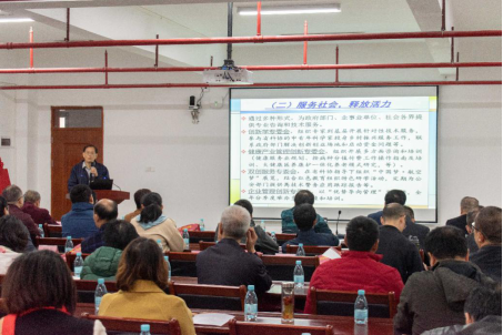 我校教学与科研事务部部长张世梅代表学校在会上致辞。她介绍了学校的概况,历史发展以及未来的发展规划。广东省管理创新和发展研究会会长袁兆亿教授作2019年年度工作总结,他从接受指导、服务社会、理论研究、规划管理等方面进行总结;同时也从围绕大局开展工作、坚持研究会的工作主线等方面提出了2020年的工作计划。