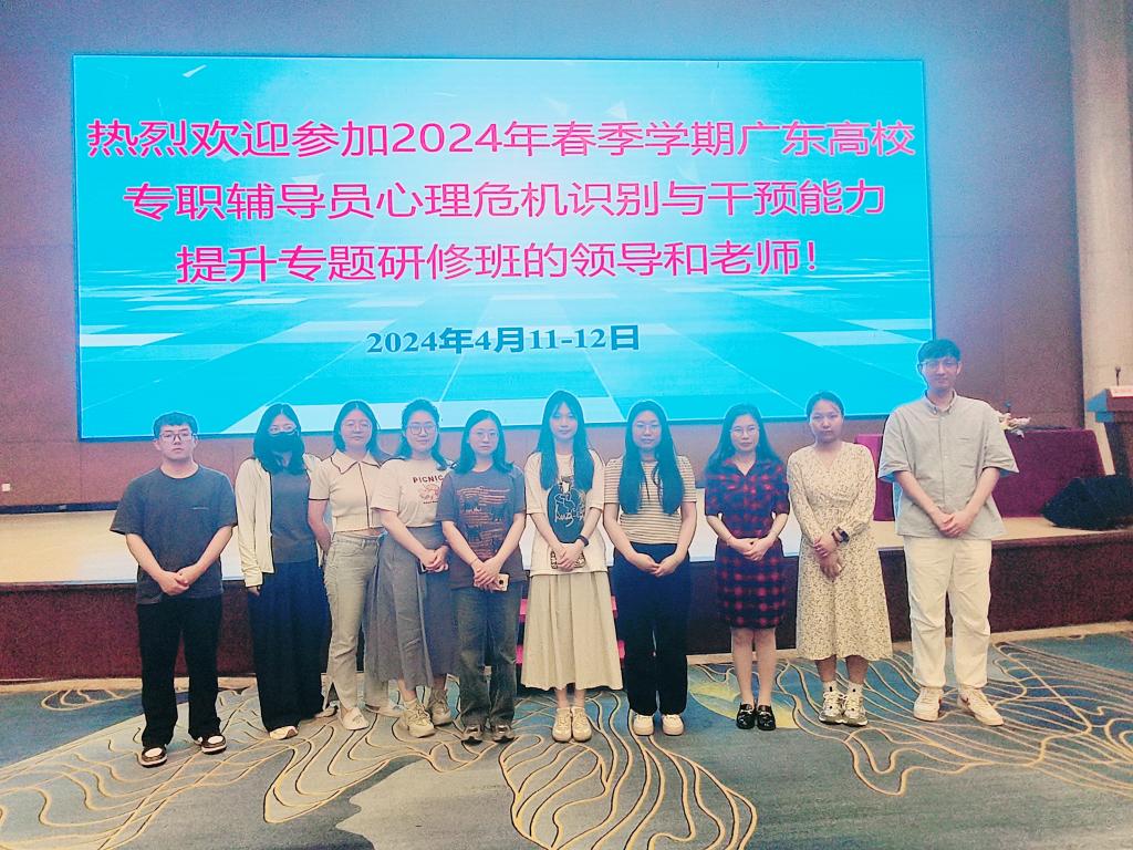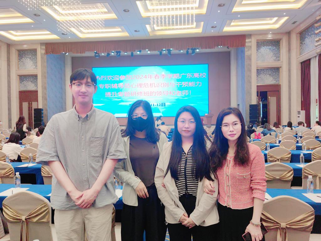 (廖婉余)4月11-12日,广东省高等学校心理健康教育与咨询专业委员会于广东银业雁山酒店二楼国际会议中心举办“2024年春季学期广东高校专职辅导员心理危机识别与干预能力提升专题研修班”,为贯彻落实做好一线学生管理工作队伍,加强学生心理疏导和心理危机干预的能力,广州理工学院共有10名老师参加此次研修班的学习。其中suncitygroup太阳集团共4名辅导员老师参加,分别是刘威志、孟芳、廖婉余、马雪。