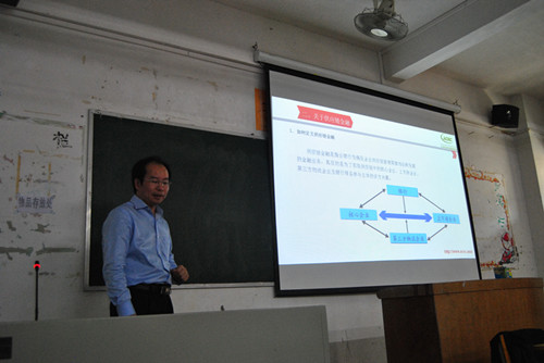 为时大约两小时的学术研讨会于24号下午在六栋508举行,参与这次研讨会的除了蔡先生跟ACSC的副秘书长外,我们还邀请了刘金国老师、刘芳生老师以及十多名学生代表一同进行学习和交流。在研讨会上,先由刘金国老师发言,简要介绍了我们学院的办学模式跟专业分类,蔡先生也对我们学院的专业超前的理念表示赞扬。接着蔡先生作了简要的自我介绍后,跟我们谈起了他周游各国的丰富而精彩的人生经历,因为工作原因,他不得不各国到处飞,虽然奔波,但是我们都非常羡慕他的人生阅历和见多识广。在交谈期间,蔡先生完全没有架子,说话幽默风趣,可以看得出他是个十分热心跟平易近人的人。他提出了在物流方面自己的独特见解,想法新颖,与时俱进,还提出了自己对大学教育的一些建议,他鼓励我们要博学、学好外语、要有创新思想、提高自己的学习能力、多接触社会、作好职业规划、重实践,他认为最重要的是要对自己有信心。这些都是当代大学生需具备的基本素质,使我们受益匪浅。紧接着,由ACSC副秘书长为我们展示介绍亚洲物流与供应链管理协会的PPT,让我们了解到ACSC是由泰国、中国、新加坡等七个国家、地区有关行业团体和专业人士发起的为培养优秀且适合当地经济发展的人才……在整个研讨过程中,同学们都全神贯注地听着,做着笔记。最后,是互动问答的环节,同学们围绕物流有关方面问题和未来就业问题,积极踊跃地向老师提问,蔡先生一一作了详细认真的回答,充分解答了同学的疑难问题。