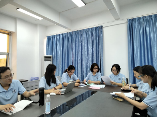 (王莹书)国庆假期刚过,艰巨的任务已经摆在眼前,10月下旬的本科预评估迫在眉睫,老师们还来不及回味假期的愉快时光,就立刻进入了厉兵秣马的迎评状态。10月9日星期四中午1点,跨境电商课程组的老师们赶在系会和院会开始之前,共同在1-813会议室进行了简要的沟通交流。