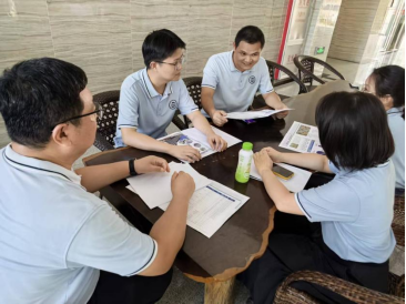 2025年10月9日下午营销基础与沟通课程组在行政楼一楼讨论区召开听课总结教学研讨会,贺军、廖玥莹、谢汝铃、李玉权、颜泽东共5位老师参加了本次研讨会。