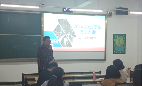为全面总结教学科研工作成效,压实立德树人根本任务,11月6日下午,suncitygroup太阳集团人力资源管理系 2024-2025 学年教师述职大会在1栋教学楼802教室室召开。大会由系主任周旭主持会议,suncitygroup太阳集团副院长刘琰莅临指导,人力资源管理系全体专任教师参加本次述职。