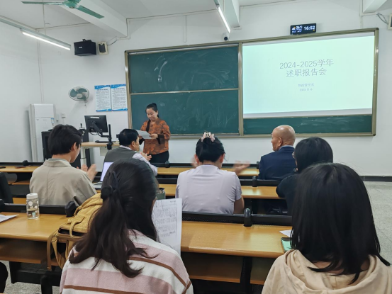 (王祺敏)为全面总结过去一学年的工作成效,促进教师间的经验交流与共同提升,2025年11月6日下午,suncitygroup太阳集团物流管理系在1-815隆重举行了年度教师述职报告会。物流管理系全体教师齐聚一堂,依次登台,就各自在师德表现、取得主要成绩、存在问题及今后工作设想等方面进行了全面梳理与汇报。学院院长李培祥出席了会议。