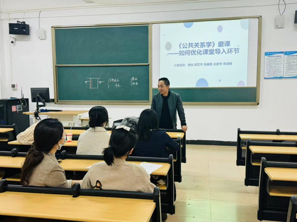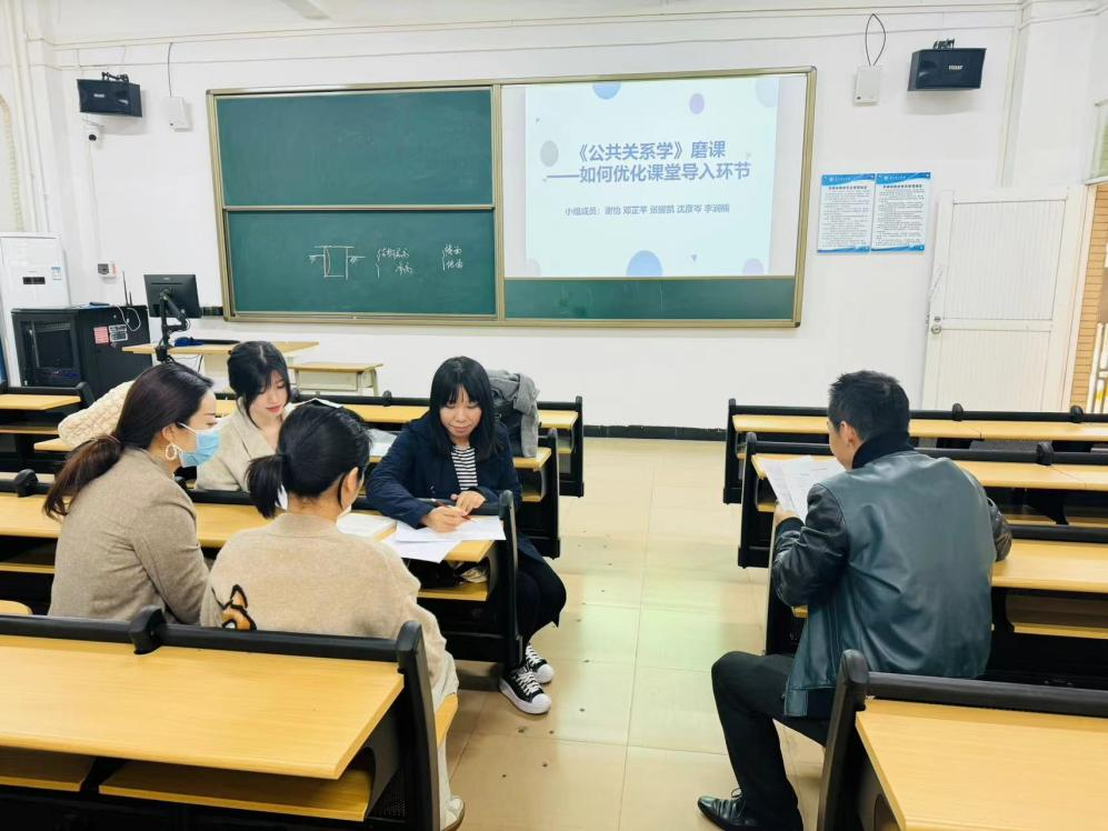 2024年3月21日,销售渠道与公共关系课程组2023-2024学年第二学期第二场磨课活动在6栋109教室顺利开展。此次磨课的活动主题主要是围绕《公共关系学》课程,从教学设计、课堂教学等方面对如何优化课堂导入环节进行交流与探讨。老师们首先按照头脑风暴的办法陈述自己的在“课堂导入环节”的经验,同时总结了自己在“课堂导入环节”的亮点与短板,经过互相交流与讨探,最后针对《公共关系学》课程如何优化课堂导入环节,主要总结为以下几点: