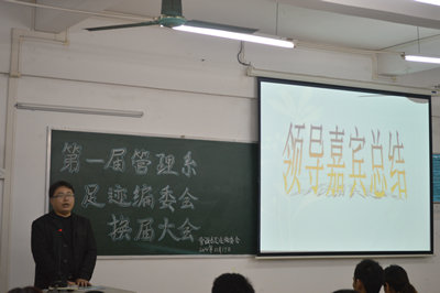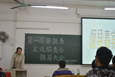 (通讯员 陈炜强)11月19日晚,管理系举行《足迹》编委会换届大会。党委委员、党群部黄菲青部长、学院办公室秘书科郑培佐老师,管理系党总支杨晓文书记,指导老师林举航和学院、系部各大学生组织和协会代表应邀参加。