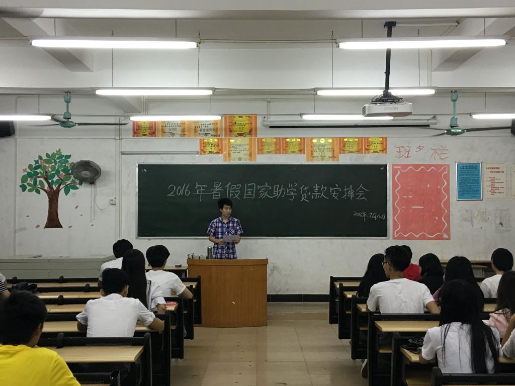 (通讯员:陈炜强)7月10日晚,管理学院2016年暑假国家助学贷款安排会在经管楼215课室顺利召开。为进一步做好国家助学贷款工作,管理学院黄鸿鑫老师为参加本次会议的同学们进行了现场工作布置、指导与解答。