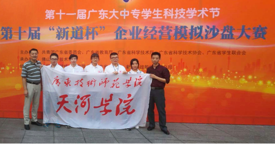 5月13、14日,第十届 “新道杯”企业经营沙盘模拟大赛在佛山科学技术学院隆重举行。我校代表队在管理学院副院长肖振华和李涛老师带领下,与来自省内87支院校代表队同台竞技,收获三等奖。