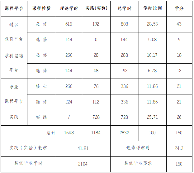 (一)课程体系结构及学时学分比例表