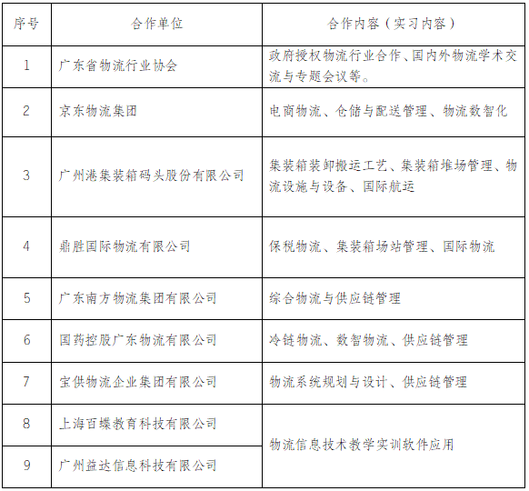 我校是广东省物流行业协会理事单位,物流管理专业为广东省特色专业,分别被京东集团、中国供应链产教联盟、中国商业经济学会认定为“优秀合作院校”“全国产教融合协同育人”试点院校。