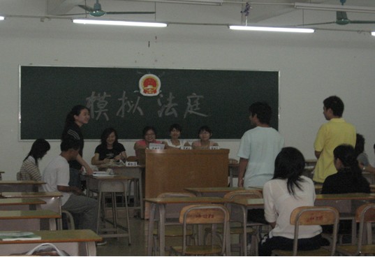 2007年4月,我们在院系大力支持下,开展了八个课时的模拟法庭,其中包括一次模拟法庭判决。