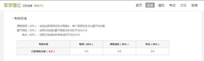 在课程页面当中点击进入“进度”板块,就可以看到课程的考核标准及目前的学习进度: