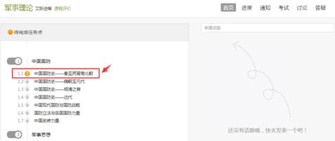 3、 进入课程详细页面后,点击待完成的章节即可开始学习。学习完以后,点击右上角的“考试”按钮可以进行考试。