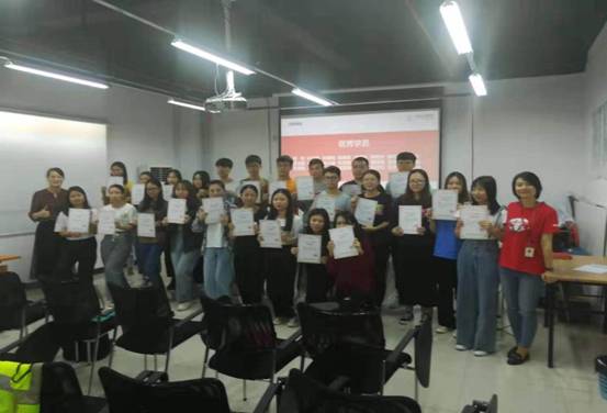 随后,校企双方共同为优秀学员颁奖。本次共有24名学生经过企业导师推荐获得优秀学员荣誉,学生们还获得了京东1-2个岗位认证书。最后,全体参会人员合影留念。