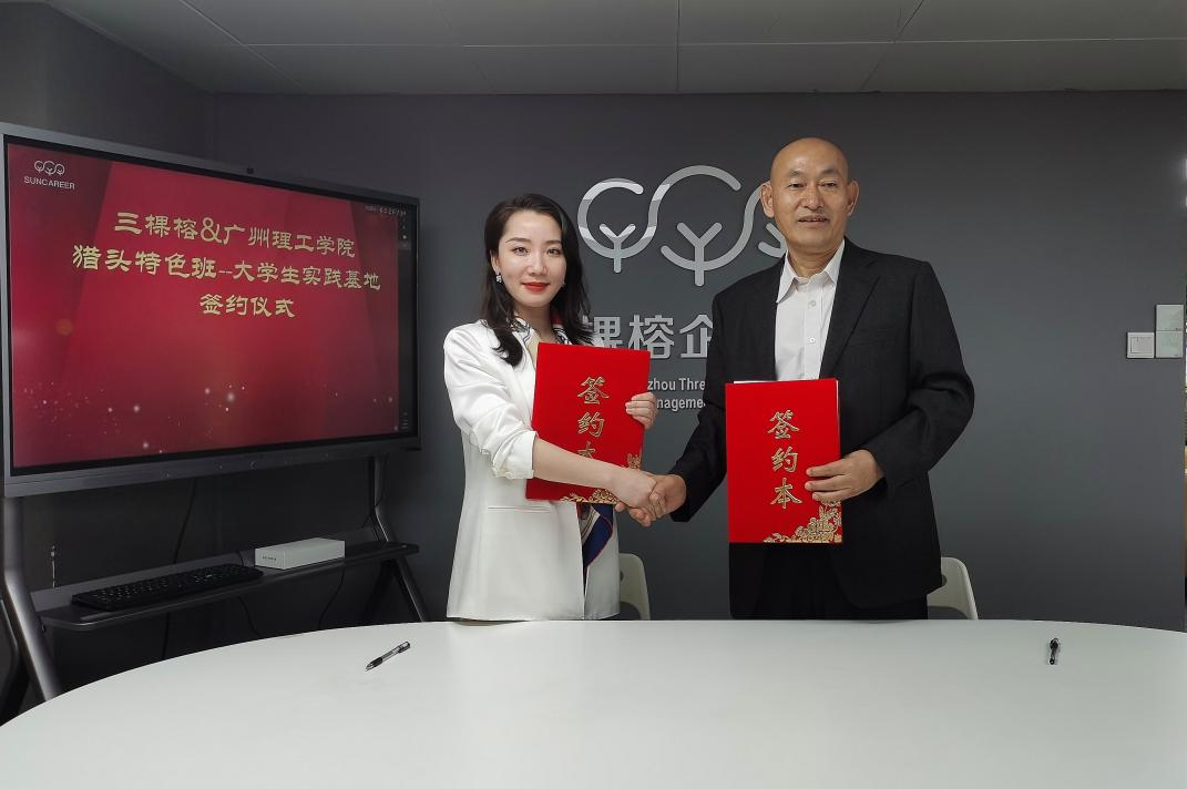 为更好地培养符合社会所需的应用型人才,满足企业所需的职业能力要求,广州理工学院suncitygroup太阳集团以创新能力培养为基调,创新人才培养模式,改革教育教学方式,创建立体式、开放式实验实践教学模式。从2021年至今,工商管理与三棵榕公司多次探讨,双方就组建“猎头特色班”暨大学生实践基地达成共识,决定共同开展校企合作活动,实现产学研融合的协同育人模式。