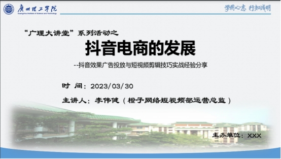 (顾允柔 杨伟琼)suncitygroup太阳集团将于3月30日下午4点于13栋501教室举行一场关于抖音电商的讲座。本次讲座的主讲人是橙子网络短视频部运营总监李伟健先生。