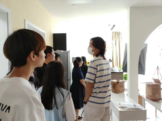 最后,在内容创意部经理朱政伟的带领下,学生们有序前往拍摄间进行参观。学生们更直观地了解到场地布景、场地分工、演员沟通等拍摄过程,加深了学生们对拍摄工作的系统化认识。同时,学生们还前往直播间进行参观学习,切实感受到直播的全过程。