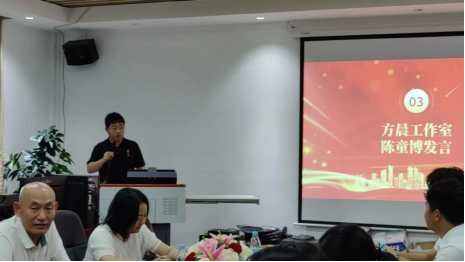然后由方晨工作室的代表陈童博发言。他首先向大家分享了方晨工作室在之前的“红海杯直播比赛”中荣获特等奖的宝贵经验。其次,他对前两个星期在红海工作人员的带领下团队外出拍摄三家国企探岗视频,以及在清远市举办的粤北片区大型招聘活动中出色完成直播的经历,进行了总结回顾。最后,他怀揣着感恩与虚心学习的态度感谢学校以及红海人力集团给予的机会,可以让工作室的每一个小伙伴都能够在直播比赛中发光发热。