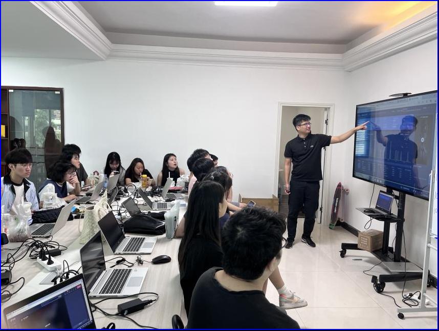 营销先锋工作室负责人宋旸对基地作介绍,大源电商直播基地成立于2023年12月,是我校重要的电商直播创新创业综合实训平台,旨在为校内师生提供电商直播实战机会、项目孵化、校企合作实习实训等支持。
