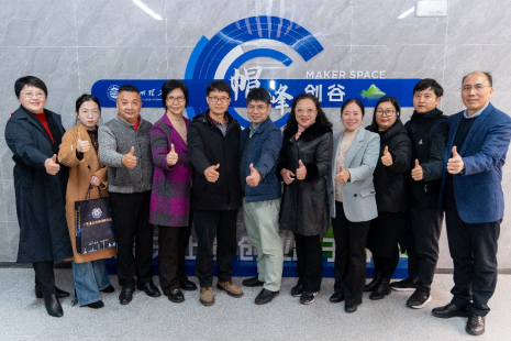 座谈会结束后,创新创业学院院长余永龙带领各位嘉宾前往创新创业孵化基地“帽峰创谷”进行了参观。