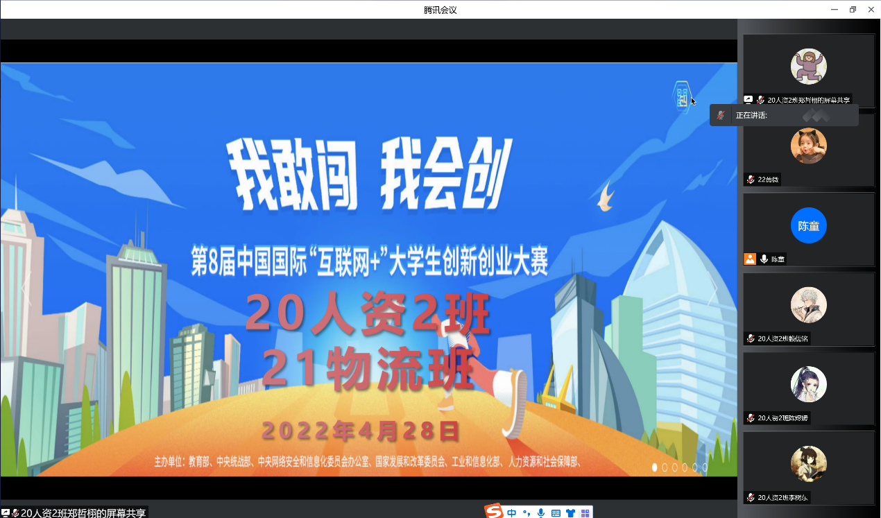 (姚佩恋 黄佳曼)4月28日上午,第八届中国国际“互联网+”大学生创新创业大赛suncitygroup太阳集团班级赛于线上举行。学院各班级学生参加了本次路演比赛。