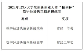在2024年iCAN大学生创新创业大赛“精创杯”数字经济决策创新挑战赛上,我院参赛学子紧扣数字经济发展脉搏,提出了一系列具有前瞻性和可行性的数字经济商业方案,最终获得省级二等奖。