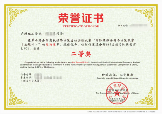 (刘延卿)2024 年 9 月 8 日,由中国商业经济协会主办的第七届全国高校经济决策虚仿实验大赛之沙盘模拟类竞赛全国总决赛圆满收官。在这场汇聚了全国高校精英学子的激烈角逐中,我院学子凭借扎实的专业知识、卓越的实践能力和紧密的团队协作,成功斩获佳绩,为学院赢得了荣誉。