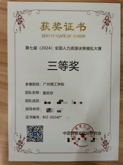 (梁廷杰 叶宗典) 9月7日,由中国管理现代化研究会指导,中国管理现代化研究会决策模拟专业委员会主办的第七届(2024)全国人力资源决策模拟大赛全国总决赛圆满落幕。经过激烈的竞赛对抗,我院学子喜获国家二等奖一项,国家三等奖一项,为我院赢得了宝贵的荣誉。