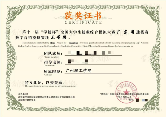 我院学子在第十一届“学创杯”全国大学生创业综合模拟大赛数字营销模拟赛项荣获广东省三等奖