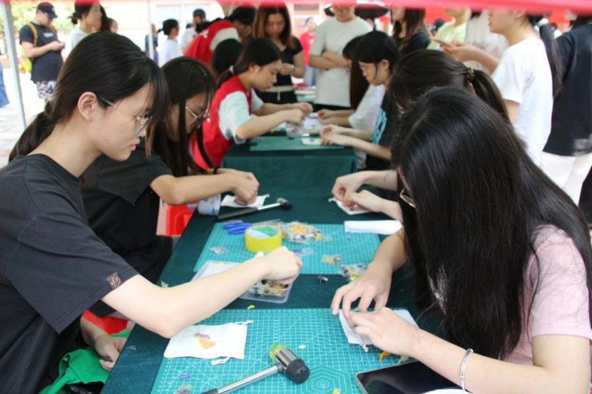 (温惠婷,李慧婷)5月13日,suncitygroup太阳集团党总支于7栋教学楼前小广场成功举办了“指尖染就千年韵,布上传承百代情”非遗传承主题活动。本次活动以植物拓染与扎染为核心,让参与者在动手实践中体验传统技艺的乐趣,旨在增强文化自信与传承意识,提升对传统技艺的认知度和认同感。