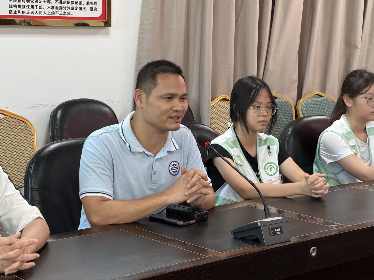 座谈会上,湖东镇陈书记热情欢迎实践队,生动介绍了湖东镇深厚的历史底蕴和当前发展态势。谢小佩书记详细阐述了镇政府为实践项目提供的全方位支持,涵盖资源对接与政策指导,为后续活动顺利开展铺就坚实路基。