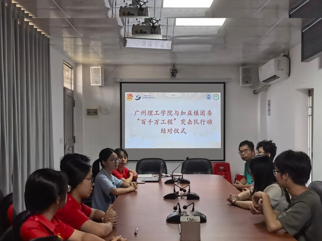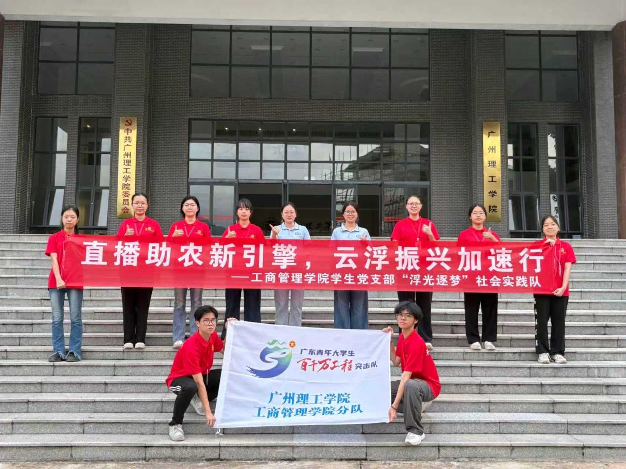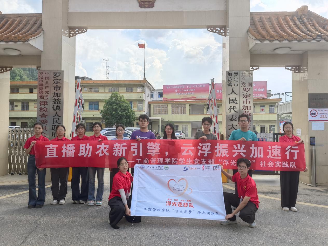 (朱春霓,何玟静)为积极践行国家乡村振兴战略,响应广东青年大学生“百千万工程”突击队行动的号召,7月14日,广州理工学院“浮光逐梦”社会实践队在何玉华、刘珍芳老师带领下,奔赴罗定市加益镇,开展了一系列主题鲜明、成效显著的暑期“三下乡”社会实践活动,为乡村振兴注入青春动能。活动前夕,实践队高效完成筹备工作,明确了“国家资助育人推广”与“直播助农”两大核心任务,并接受了广州理工学院营销先锋工作室市场总监李安迪的农产品直播技能培训。抵达加益镇后,实践队与当地团委成功举行“百千万工程”突击队项目结对仪式,双方就助农直播拓宽销路、资助政策助力乡村教育等议题深入交流,为后续合作奠定了坚实基础。