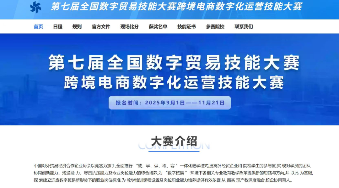 (陈德铭,陈洁琪)当数字浪潮席卷全球贸易,当跨境电商成为连接世界的桥梁,一场聚焦实战、赋能成长的专业盛宴正向你发出邀约!中国对外贸易经济合作企业协会重磅推出 “第七届全国数字贸易技能大赛跨境电商数字化运营技能大赛”,这不仅是一次展现专业能力的竞技舞台,更是一次提前扎根行业、锤炼核心素养的宝贵契机,我们热忱欢迎每一位怀揣数字贸易梦想的你踊跃参与!