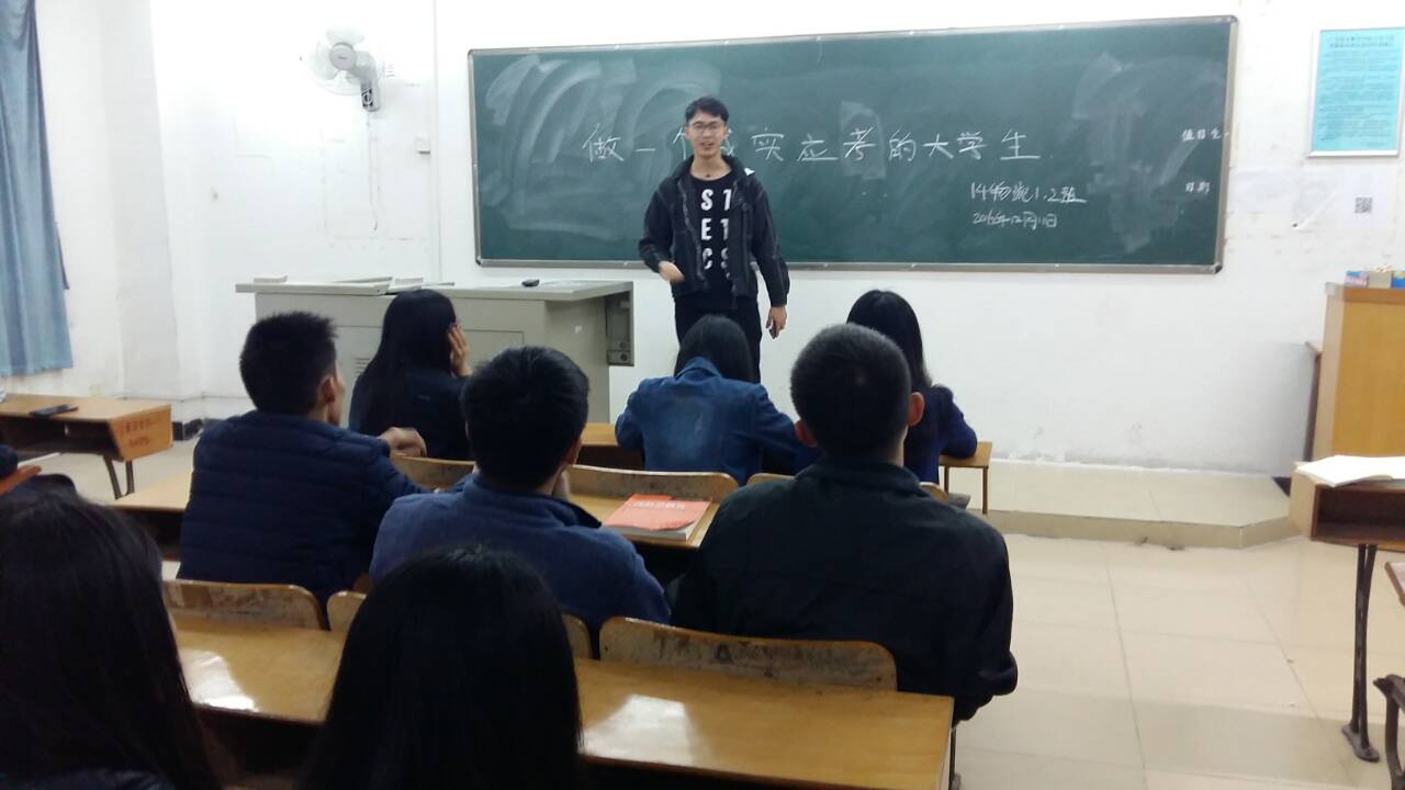 12月11日晚,我院组织13-15级开展以“做一名诚实应考的大学生”为主题的班会。本次班会旨在以端正应试态度,规范考试行为,以良好的心态迎接考试,发扬优良学风,使大家充分认识到诚信考试的重要性,端正考试态度,规范考试中的行为,防微杜渐,避免违纪行为的发生。树立同学们的诚信意识,塑造诚信品质,弘扬诚信之风,响应学校号召,加强同学们在学习生活中的诚信观念。使同学们充分的认识诚信的重要性,让大家在以后的工作与学习中以诚信的优良传统美德指导自己的一言一行。