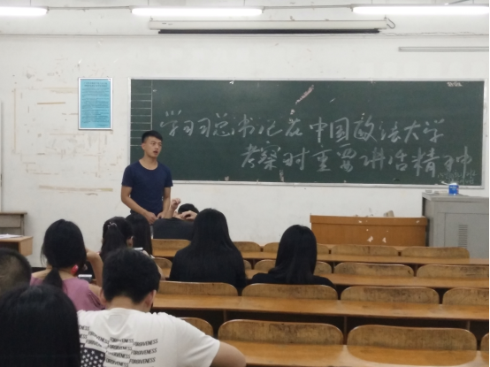 (通讯员:李子裕)6月4日晚,为深入贯彻“一学一做”学习教育活动,我院15物流管理1班团支部在6栋412召开了本学期第二次团支部会议。会议主要议题是学习习总书记在中国政法大学考察时重要讲话精神,全体团员参加了本次会议。会议由本团支部书记江亲师主持。