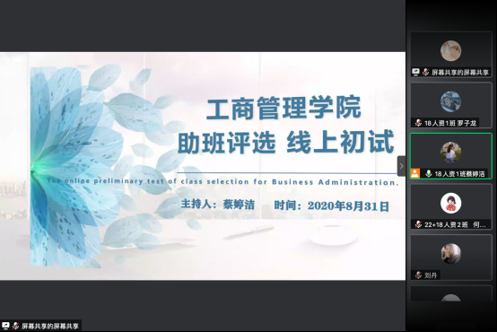 此次助班评选线上初试会议完满结束,助班工作是一个长期的工作,希望竞选成功的同学们能不忘初心,坚持下去,给师弟师妹们带来温暖跟力量!