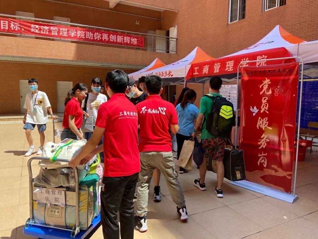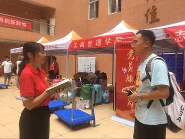 广州的秋天,仍很炎热,却阻挡不了党员同志迎接新生的步伐。在这次迎新工作中,党员同志们统一身穿红色服装,佩戴袖章,热情迎接师弟师妹们的到来,在校区的乘车点、行李点、交通引导、行李搬运、领取军训服,机动保障等工作中,各司其职,尽心尽力,为新生报到入住带来了极大的方便。