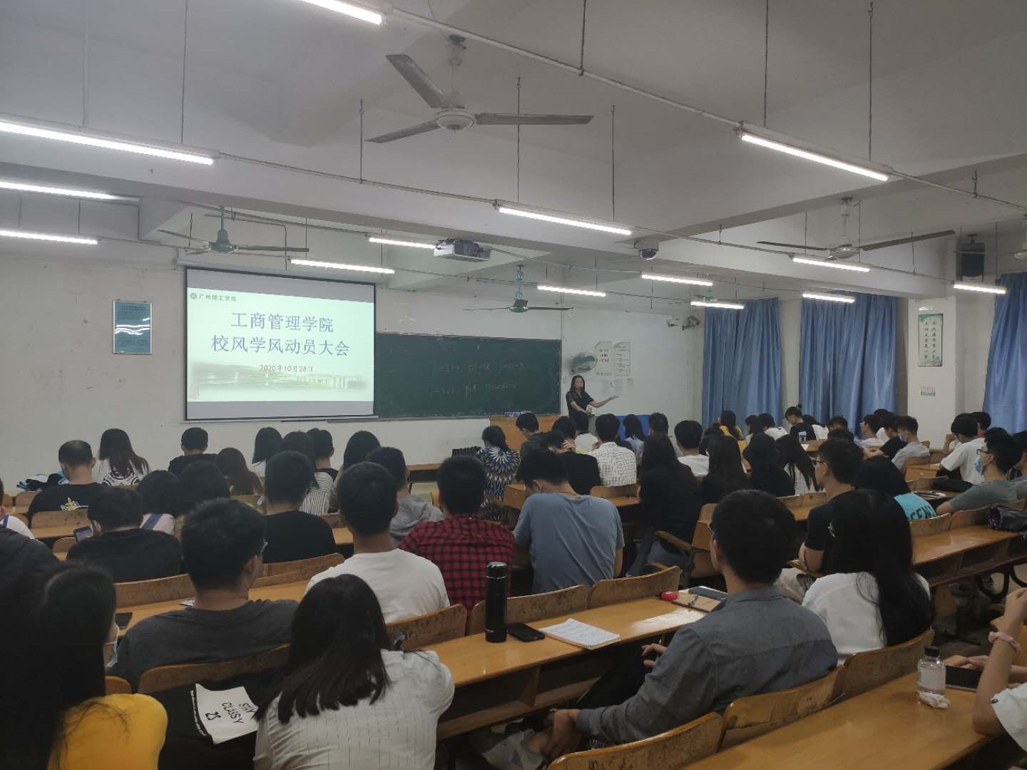 杨惠书记对此次大会做发言,重点强调了健康信息收集填写和查寝签到问题,健康信息收集填写和查寝签到必须要真实和及时,班委要发挥好督促作用,同学间也要做到相互提醒。对于请假问题必须严格按照学校规章制度执行,不得无故旷课,并强调违规违纪与综合测评挂钩。宿舍内坚决不允许使用大功率电器,学校会进行不定期检查,违者以处分之。最后强调防诈骗问题,如果涉及转钱的事,需加以防范。各班需关注广州反诈服务中心服务号,学习反诈骗知识。