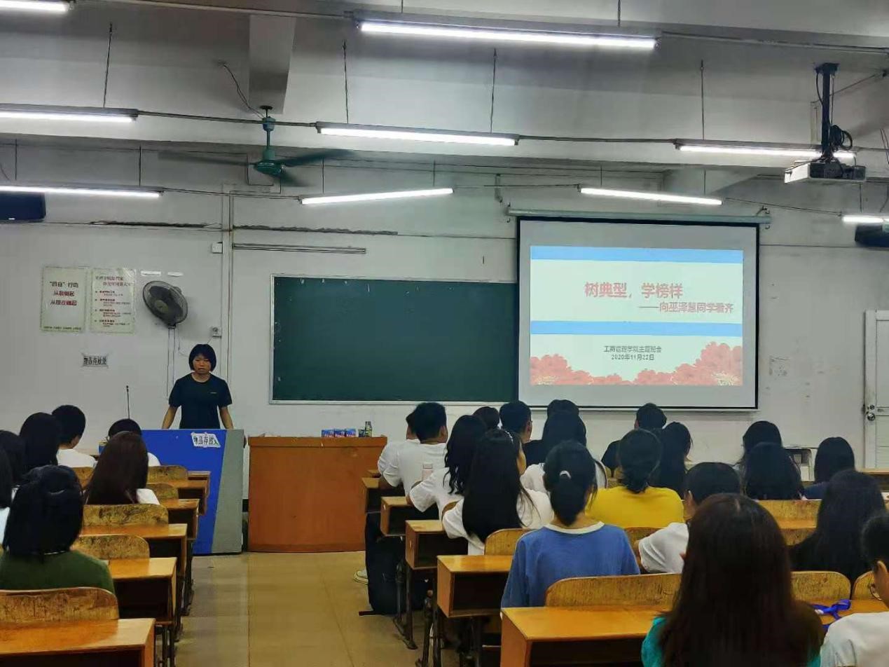 为了更好的号召同学们向巫泽慧同学学习,suncitygroup太阳集团于2020年11月22日晚召开全体学生“树典型,学榜样——向巫泽慧同学看齐”的主题班会。