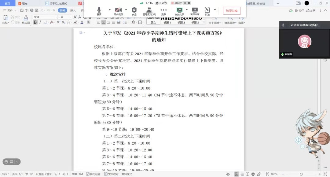 会议开始阶段,各班辅导员叮嘱同学们返校前依旧要坚持进行每日的健康打卡,准备好安全码、口罩等物品,返校途中要正确佩戴口罩,避免与有可疑症状的人员接触。返校后,在进入社区、食堂要配合健康监测,保持与他人的距离,禁止串门或到其他宿舍留宿。同时不得开展大型活动,非必须情况不得离校。并组织同学们学习《2021年春季学期师生错时错峰上下课实施方案》,提醒同学们通过教务系统及时查看课程信息,按时上课,做好考勤,注意作息时间,保证课堂质量。