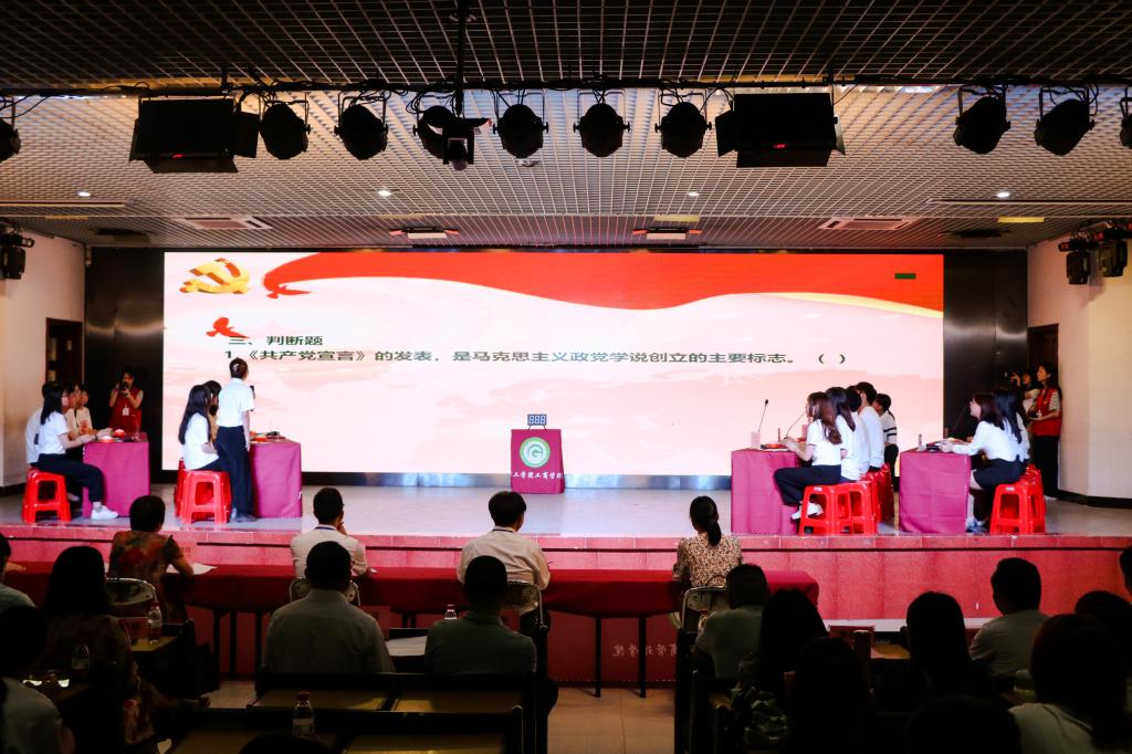5月11日上午,广州理工学院在经管楼学术报告厅举办“庆祝中国共产党成立100周年”党史知识竞赛,各二级党组织和青马党支部代表队参加学校总决赛。党委书记黄圣诚出席并致辞,党委委员陈英征、新闻中心主任黄菲青、马克思主义学院院长袁毓玲、马克思主义学院党总支书记邓楠、马克思主义学院教师袁花平担任比赛评委。党委机关、二级党组织负责同志和600名师生现场观摩,全校师生通过直播收看。