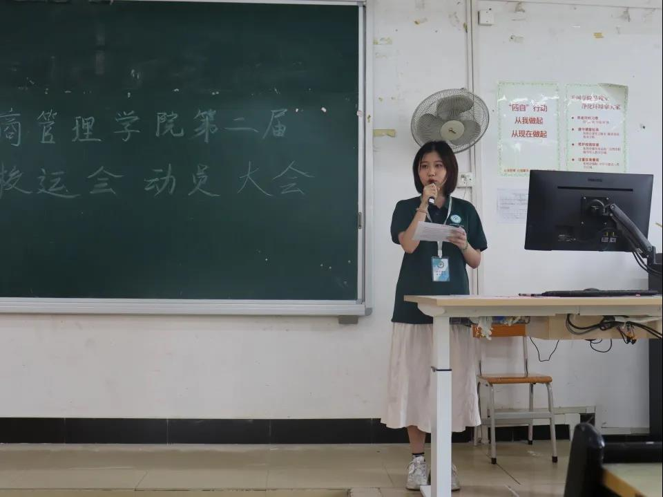 在会议中,首先由文体艺术部副部长钟婉文讲解校运会的注意事项和规则;随后由运动员代表李琳丽发言,表示将以真正的体育精神参加本次运动会遵守各项比赛规则;团总支·学生会执行主席文家俊对此表示支持并对所有运动员做出鼓励。