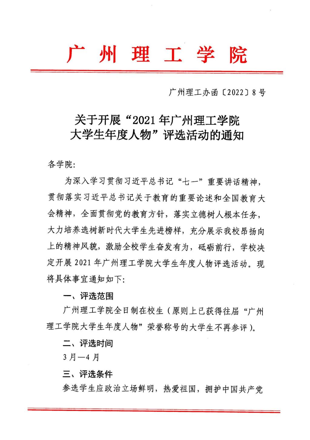 关于开展“2021年广州理工学院大学生年度人物”评选活动的通知