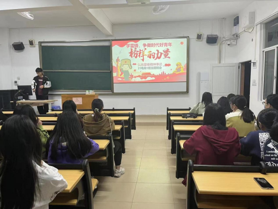 雷锋精神的核心是为人民服务。雷锋二字,已成为人们心目中热心公益、乐于助人、扶贫济困、见义勇为、善待他人、奉献社会的代名词。我院各班级团支书兼班长采用多种形式开展“学雷锋,争做时代新青年”主题班会,结合PPT讲述了雷锋同志所做的感人事迹,引导同学们如何将新时代雷锋精神转化为实践,让学雷锋活动融入日常、化作经常,进一步弘扬雷锋精神,倡导树立社会文明新风尚,培养学生养成良好行为习惯与道德品质。