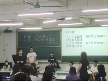 本次心理健康辩论比赛中较量的,不仅仅是知识、智慧,还有教我们如何关注自己的心理健康情况,如何处理心理健康问题。真挚地希望大家在这次心理健康辩论比赛中都能有所收益。
