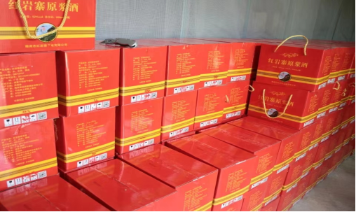 最后,实践队成员们参观了红岩寨酒厂的自动化包装车间和米酒成品的展示,车间进行高效率精细化的包装,良好的包装让米酒脱离酿酒罐后仍然不失酒的醇香,同时更加吸引消费者。红岩寨酒厂在传统的酿造工序的基础上采用创新发展的方式,不断推动优质酒的标准酿造。目前,红岩寨酒厂已经具有一定生产规模,品牌也正在被更多的人所认可。