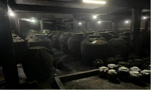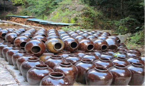 随后,大家跟随老师傅来到红岩寨酒厂米酒酿造仓库,迎面看到的是整齐排列的酿酒罐,阵阵酒香扑鼻未来,越往深处走,酒香愈加浓烈。经了解,米酒被呈现给消费者之前,需要经过不断的蒸馏提纯后,并至少封存2-3年。经过复杂的工序和漫长的等待,从小小米酒罐里散发出了独特的曲香气。