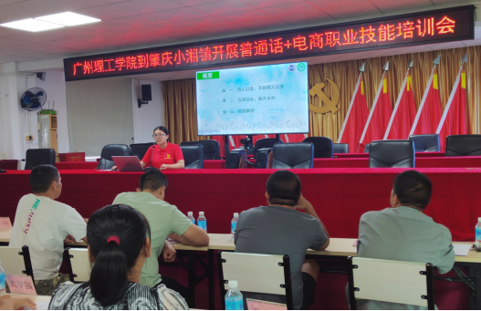 (李钰,吴海宁)7月5日下午,为了聚焦“电商+”赋能乡村振兴,以产业化发展思路助力乡村振兴发展,通过培训交流使得更好发挥电子商务在促进农业产业提质增效的作用,suncitygroup太阳集团“忆湘咖啡”实践队与肇庆市小湘镇政府联合开展普通话+电商职业技能培训会。