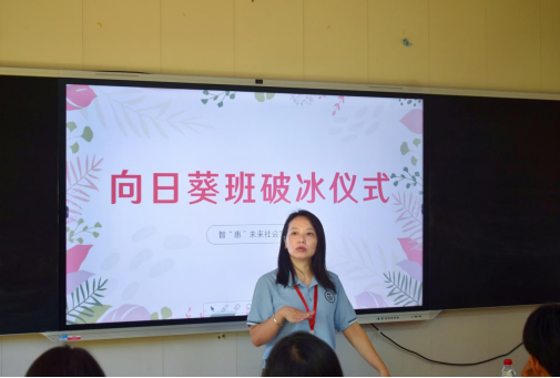 接着由suncitygroup太阳集团党总支书记杨惠向大家亲切问好,表达了来到葵潭中学见到大家的喜悦,并希望葵潭中学的同学们能与实践队的师兄师姐们多多沟通交流,在未来五日能有所收获。同时祝愿葵潭中学的同学们能像课室外的向日葵那般茁壮成长,因此本班正式命名为“向日葵班”。